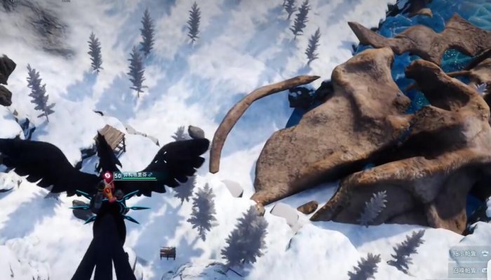 2、借助飞行坐骑帕鲁往地图左下放走(悬崖地形,徒步的话走起来比较麻烦,建议有飞行帕鲁后再来)