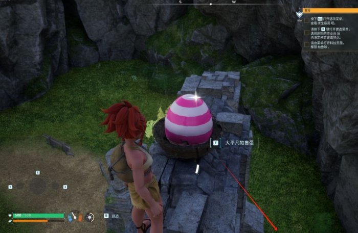 再继续往阶梯下走,按照路线可以看到远方有另外一个蛋,这里需要跳到右边的草地上面,沿路记得也捡一些树枝石头。