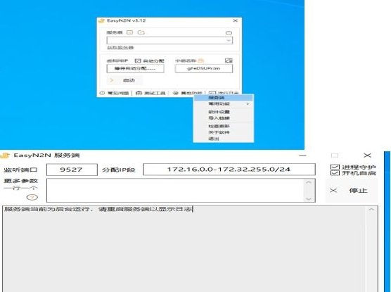 远程连接云服务器,运行下载好的n2n,点击服务端,运行后台挂着就可以了。