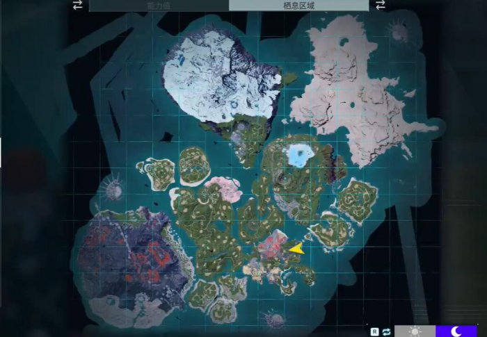 在帕洛斯群岛中央地带仅有的一块冰原地区上,分布地点独特好找,夜晚活动常规型帕鲁。