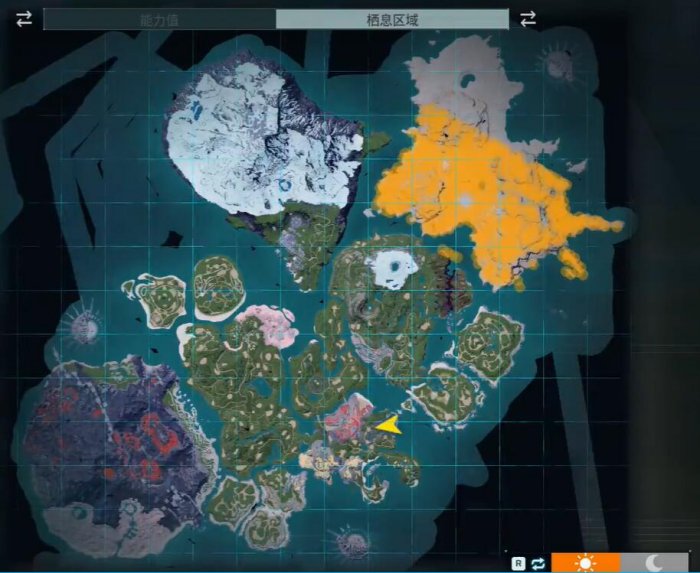 在帕洛斯群岛右上角的沙丘地带,白天活动常规型帕鲁。
