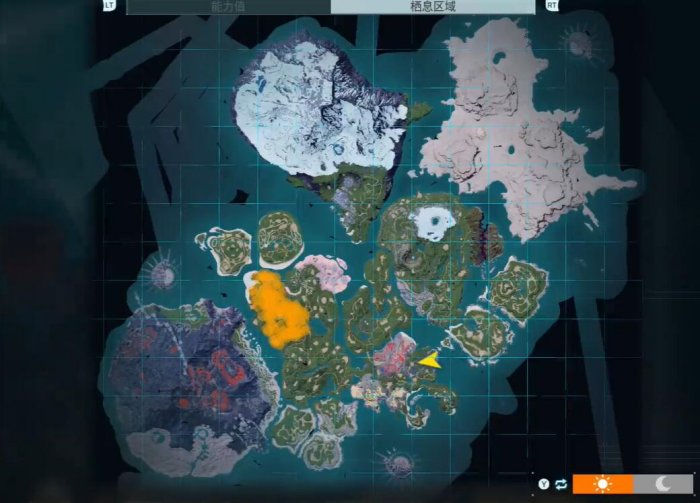 位于初始区域帕洛斯群岛中央地带的左下角。白天活动常规型帕鲁。