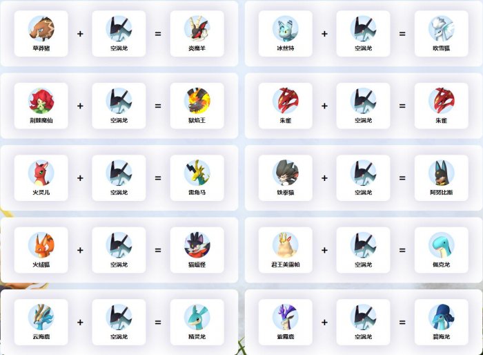 幻兽帕鲁中空涡龙参与的配种公式一览