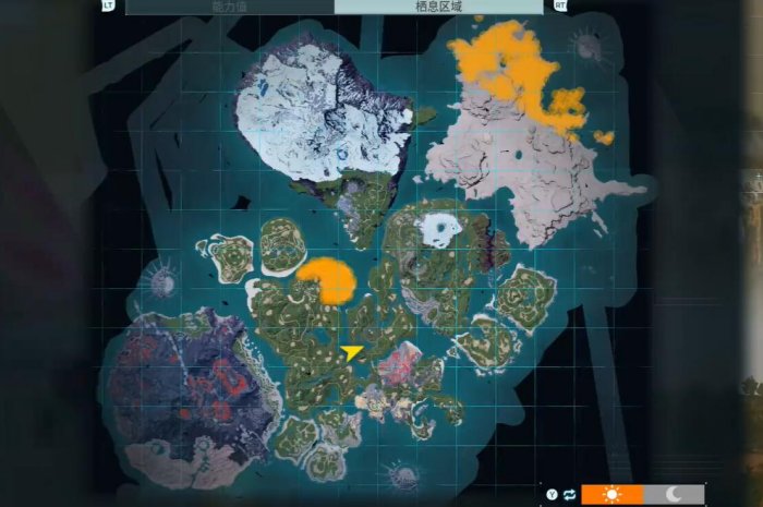 主要在沙丘地区右上角沿海地带,其次在中央区域西北部,白天活动常规型帕鲁。