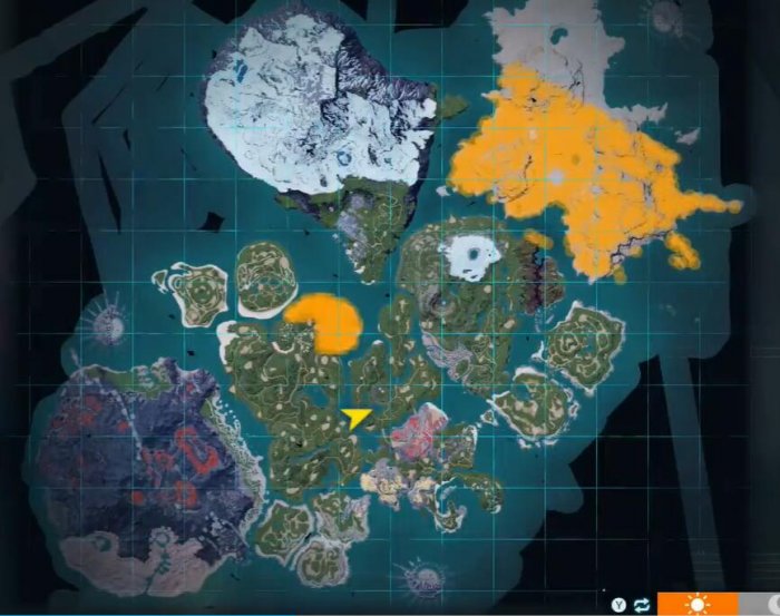 主要分布于沙丘地区,副分布于中央地区西北部,具体区域如下图所示,白天活动常规型帕鲁。