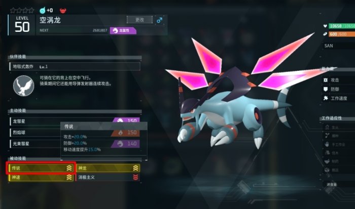 2. 捕抓拥有【传说】词条的神兽,分别是火山左边的空涡龙、雪山左上角的唤冬兽、沙漠最上方的圣光骑士与混沌骑士,这4只神兽都带有【传说】词条。