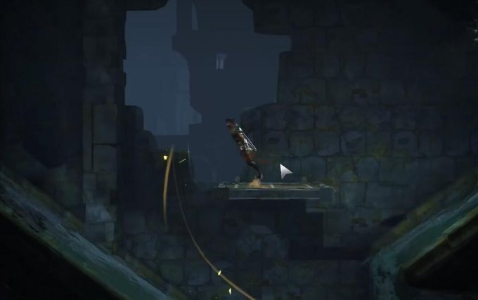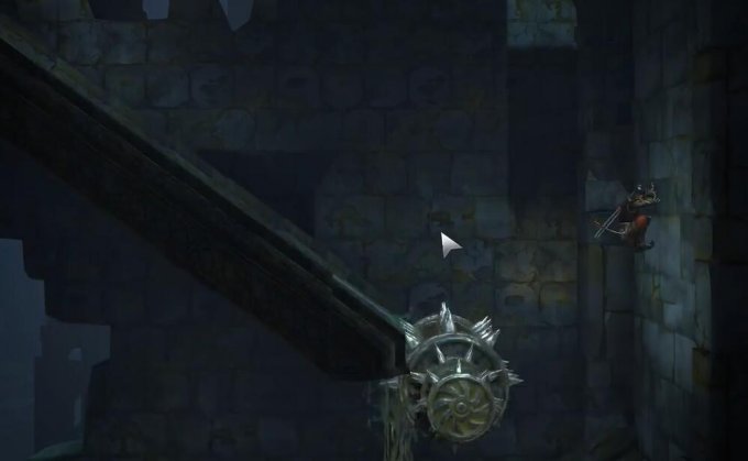 3.玩家需要小心地板上的滚筒陷阱,之后可以在墙上看到一块可活动的木板,跳上它之后往左走。