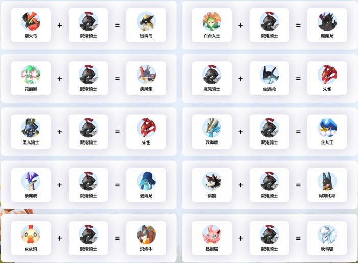 混沌骑士参与的配种公式一览