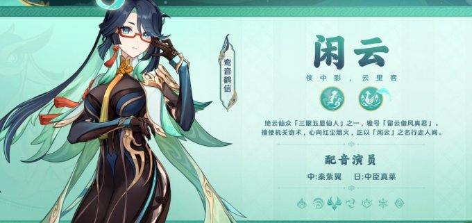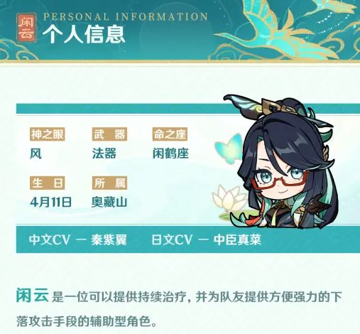 在官方对于闲云的定位是“可以提供持续治疗,并为队友提供方便强力下落攻击手段的辅助型角色”。