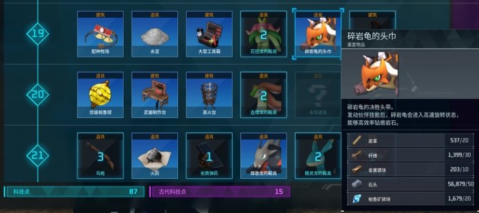 第二样东西,龟龟的头巾,在帕鲁装置制作台制作