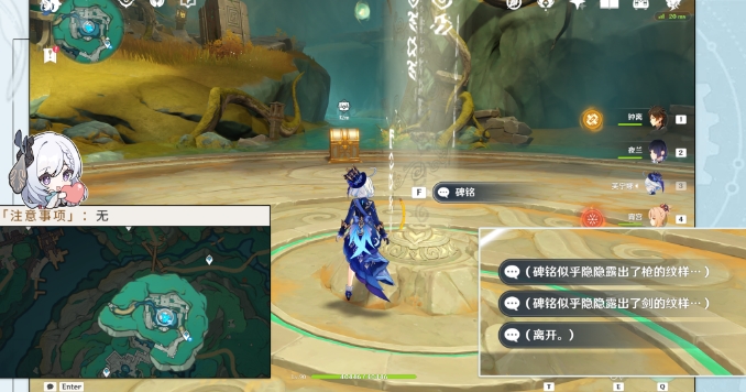 5.最后返回洞窟中间的平台,与碑铭交互,分别完成枪,剑挑战即可