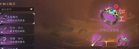 大家打开【加工】界面,找到戒指,就可以看到加工需要的材料。