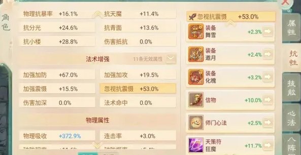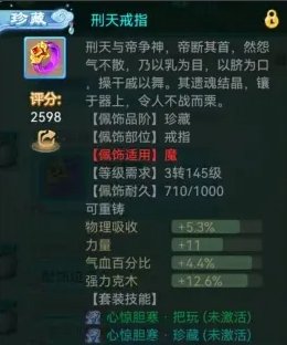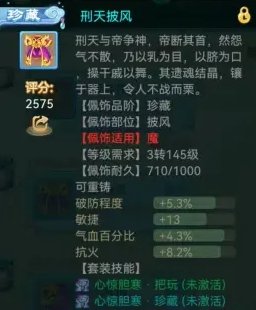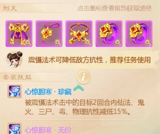 珍藏套的效果:被震慑法术击中的目标2回合内仙法、鬼火、三尸、毒、物理抗性减低15%。