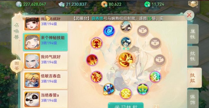 天籁梵音,这个也是园子领悟的,打了氪金以后领悟的,一开始觉得鸡肋,去打心魔17以后觉得巨好用,宝贝的不得了,朱雀三回合克结束,珍珑敏低,正好续上朱雀克,还能站住,下回合可以继续天籁克,很nice。