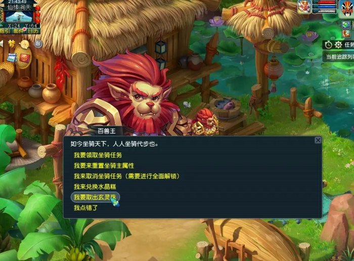 在百兽王(仙缘洞天26,62)处,选择“我要取出坐骑玄灵珠”,即可取出已经镶嵌的坐骑玄灵珠。