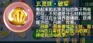 玄灵珠的问世,让玩家在使用召唤兽时有更多选择,更快更频繁地召唤新召唤兽可以使自身得到更大增益。8级玄灵珠·破军可以令玩家“召唤”召唤兽或孩子时,有100%概率提升1%伤害,只需召唤4只召唤兽就有媲美真阳令旗的效果(提升4%伤害,持续到战斗结束)。