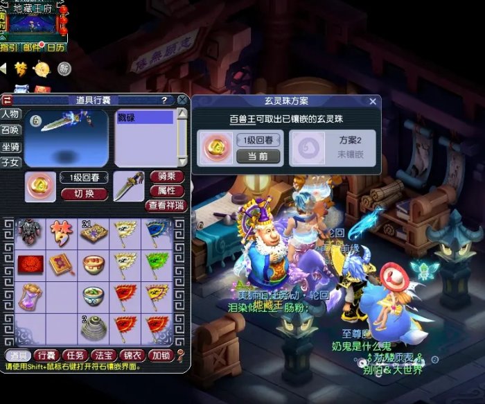 “召唤”召唤兽或孩子时,恢复自身等级*N的气血和N点愤怒。(N为玄灵珠等级)