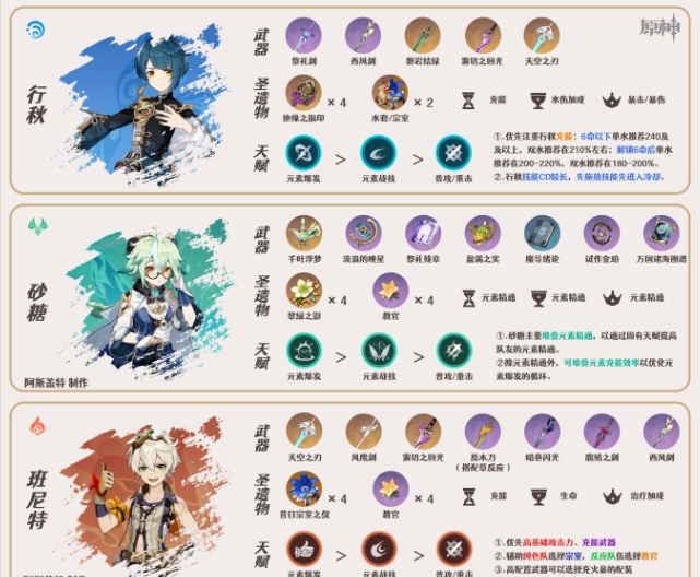 【角色培养】行秋/砂糖/班尼特