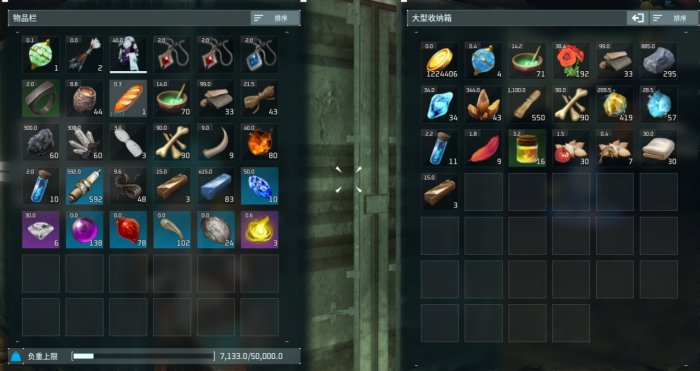 在打开箱子后,按R键可以快速整理背包里和箱子里重复的物品,按鼠标右键可以将选定物品快速整理至箱子内。