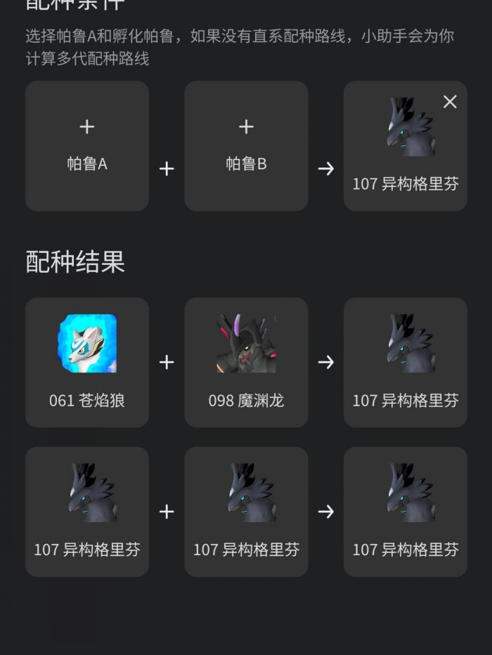 配种思路:先培养出狼和龙,然后获得初代格里芬