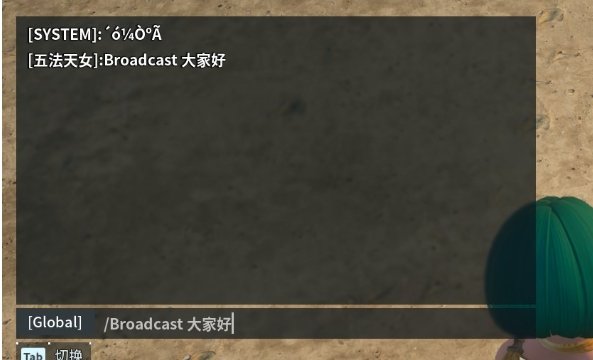注意:游戏内输入所有的服务器指令,都要以“/”符号开头紧接着就是指令名+空格+参数,比如全频广播“大家好”三个字:/Broadcast 大家好