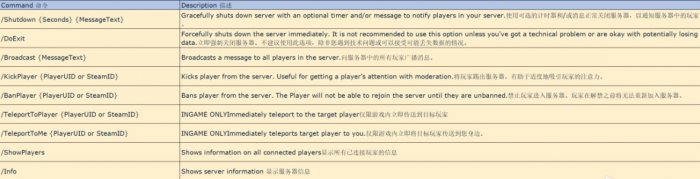 管理服务器有两种方式,一种是进入游戏内使用服务器指令,另一种是在服务器配置“RCONEnabled”这个参数为RCONEnabled=True之后使用RCON来远程管理。