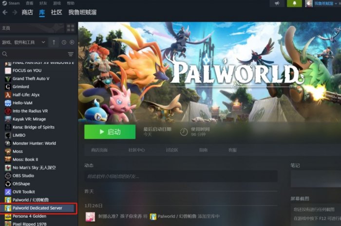 steam购买《幻兽帕鲁》之后直接在库里搜索"Palworld Dedicated Server"然后下载即可,下载完成后如下图所示。