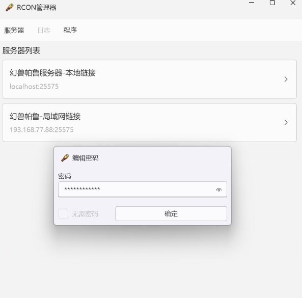 RCON获取管理员权限,需要在编辑密码中输入服务器配置的“AdminPassword”的值,即输入管理员密码。