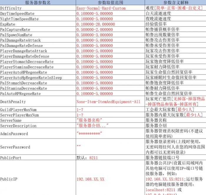 默认参数配置,当PalWordSettings.ini内为空时生效