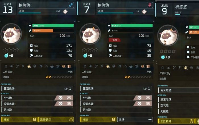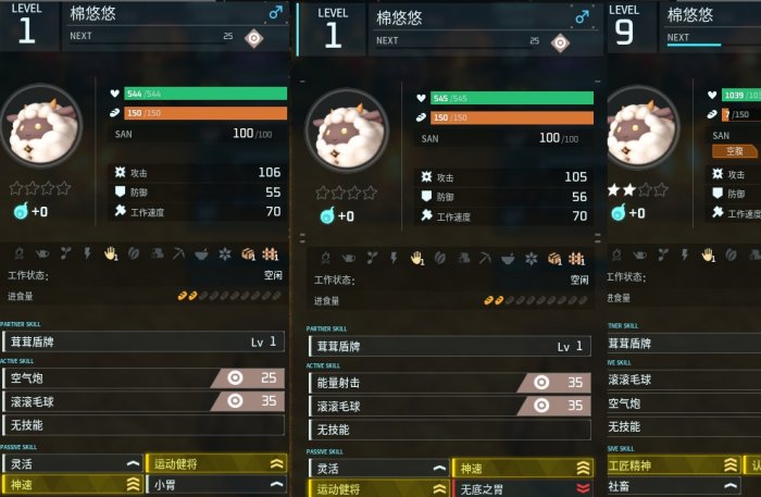 最后一步将拥有神速、运动健将、灵活的棉悠悠,与刚刚配好的传说幻悦蝶配种,前面不完美的云海鹿也并非没有用处,可以直接放在帕鲁浓缩机里喂给四速云海鹿升星!