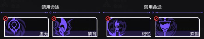 1、禁用命途推荐:虚无、繁育、记忆、欢愉四选一。命途禁用方面没有固定标准,根据自身出战队伍的不同,可自行决定禁用哪些命途。