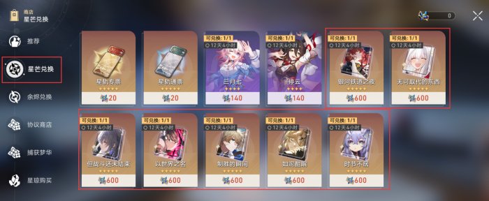 此外在商店里,还可以用未熄的星芒兑换常驻池的五星光锥,而且是每个月刷新一次购买次数。