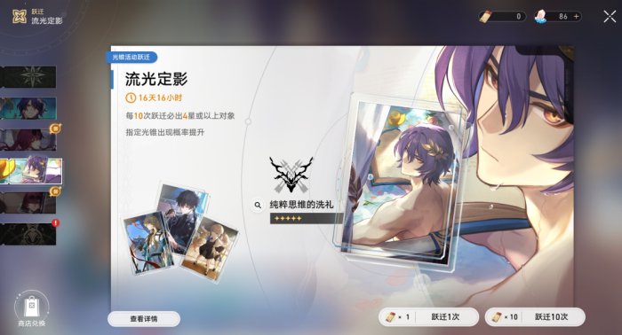 也可以用未熄的星芒兑换新手池内的四星角色,每个月会轮换其中两名角色。(1.0以后登场的四星角色暂时不会加入商店轮换。)