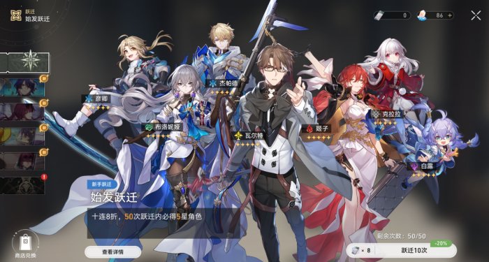 新手池只能抽50次,并且只能进行十连抽,每次十连抽都是八折抽卡。保底为特殊的50抽内必出五星角色。