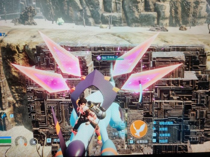 跑到禁区二层类似大铁门的地方的正中间,骑上飞行帕鲁,往外拉。