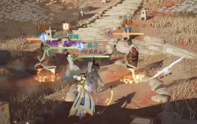 进门2个小怪就上机制了,一个外功免疫一个内功免疫,且有根线连接,这根线会让他们2个都变得非常肉,队伍不够强会很难打死,建议进去后先拉开扯断线,分开用内功和外功输出击杀即可(打外功免疫的怪时,外功输出门派别站着看戏,前面让你们用的轻剑副武器就是这时候用的)。