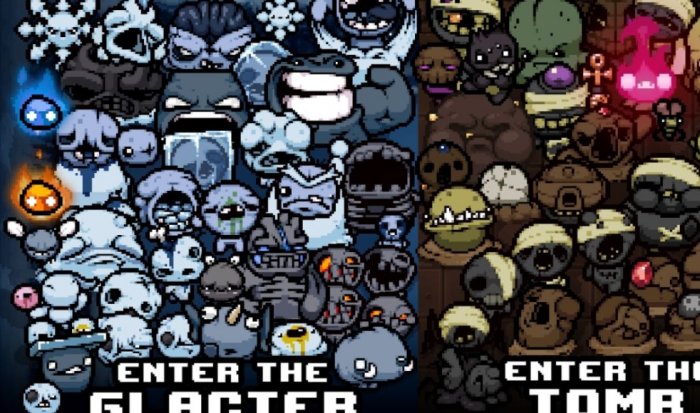 邪魔典纸增加了500多个怪物、23个boss、140多个道具、分散在不同楼层的48000多个新房间、还有很多小饰品。增加了两个新角色,Fiend和Golem。