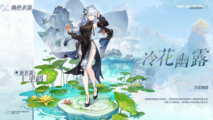 原衣装「缚绝红尘」是隐于山间的仙家子弟,此次海灯节衣装「冷花幽露」象征申鹤渐返尘世,不知各位更满意申鹤哪一身装扮呢?