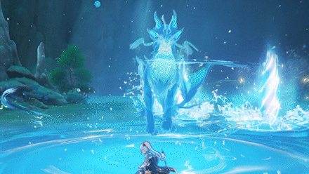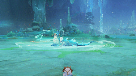 隐山猊兽汇聚水之仙力施放「鸿泷山涧」,此时隐山猊兽将会常驻附着水元素,且允许被冻结;