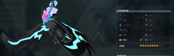 本作目前唯一的单三级搬运帕鲁,用过都知道搬东西效率是真的高。可惜本身是个大体积+飞行单位,注定只能被放在分矿。