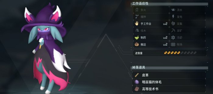 暗巫喵在玩家20级左右就能获取,自身工种是2级手工、搬运、制药。