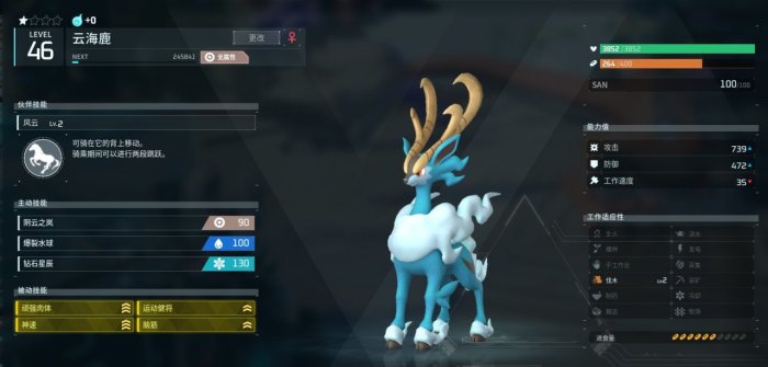 原因很简单,抛开阴云之岚不谈,云海鹿的移速和体积最适合陆地跑图的,后期捡捡地上的垃圾是真舒服。