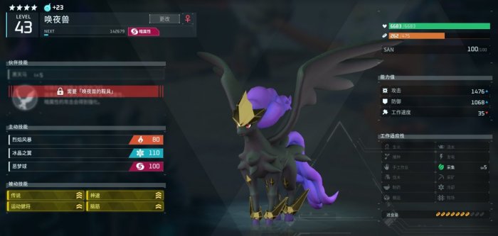 冷知识,唤夜兽拥有目前最高的种族值515,但是因为没有大威力的专属技能,加上乘骑没有加伤,所以实际伤害不如异构格里芬。