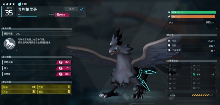 其飞行速度要快与异构格里芬,并且培育过程简单,个体值波动很小,不想孵1000个异构格里芬蛋的就能选择唤夜兽。