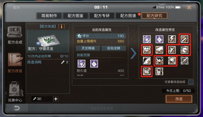 血量上限提升,由于守御灵龙的灵龙灵龙赐福技能特性,在组装强化模块时,首选提升血量上限高的能量核心、发动机,这样可以更多的回复护盾值,提升在战场上的续航能力