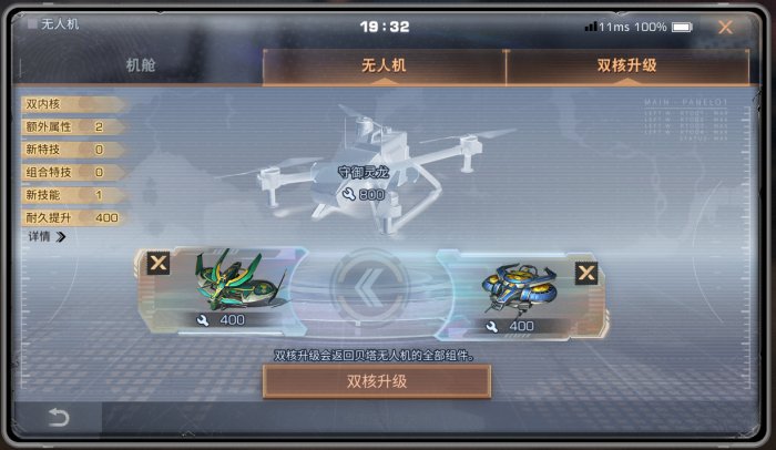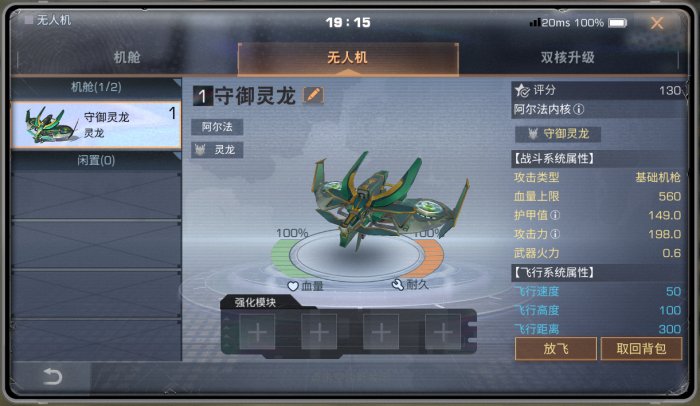守御灵龙无人机为阿尔法无人机,搭载贝塔无人机,可升级为欧米伽无人机