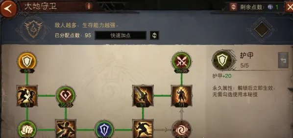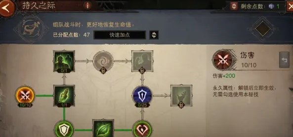 激活天赋方面选择了不败之地点出【生机】、硕果累累所有的方框全点,用于日常任务和副本、鬼斧神工也是全部激活,用于秘境挑战和魔神挑战等需要补输出的场景、如果你有救星使魔,可以不败之地不点【生机】,激活大地守卫来打战歌。