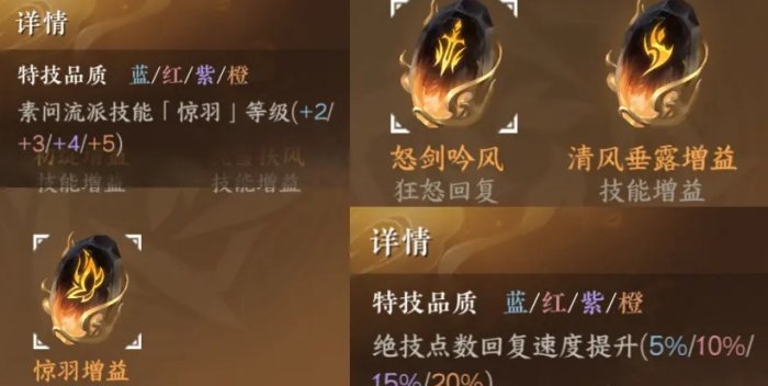 职业技能:惊羽/灵犀/星落花海/丹心饮意