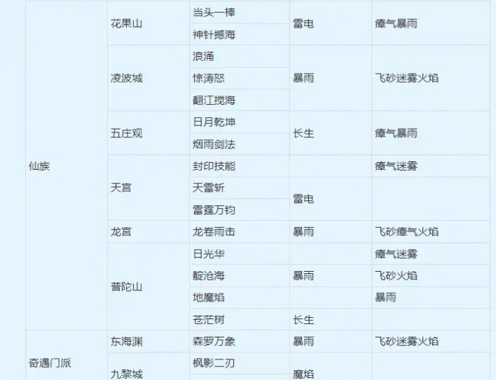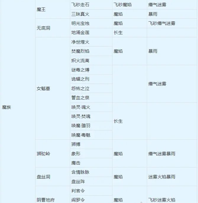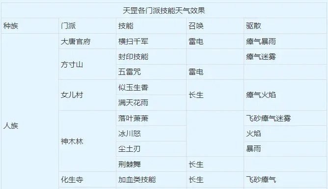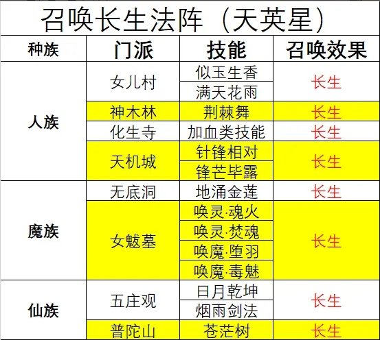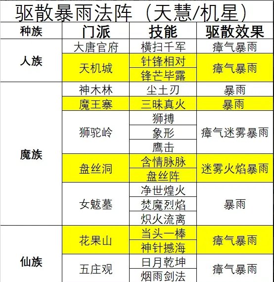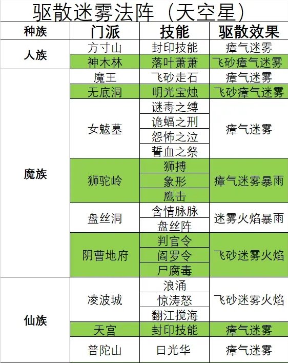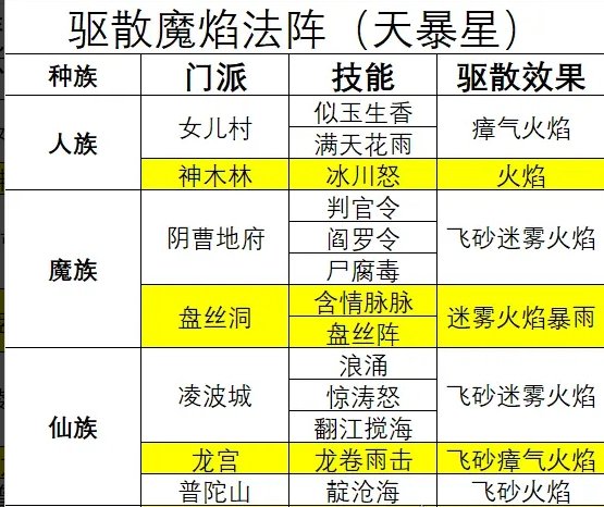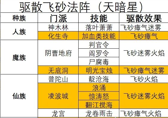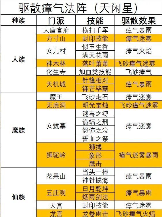 结尾附上所有门派的技能驱散与召唤的列表,按照种族进行排序,方便大家查阅。