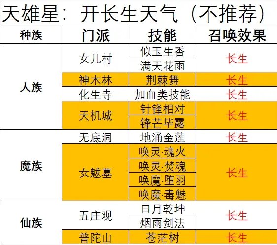 开长生天气之后天雄就变成强化版的天英星了,且血量比天英的多,所以不建议开这个天气,尤其NE,WZ门派,第一回合容易误操作进行封印,从而大大提升难度。